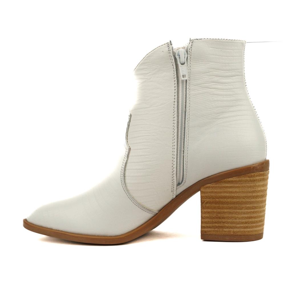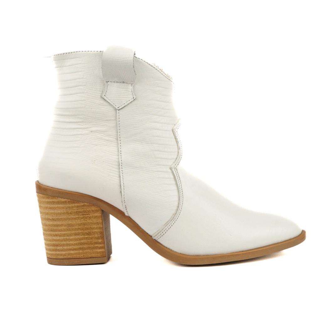 Color: BlancoAcabado: 100% piel Línea: DamaConcepto: Botín dama Tacón cuadrado de 7 cm de alto Con textura en el tubo que le da un toque muy cowgirl