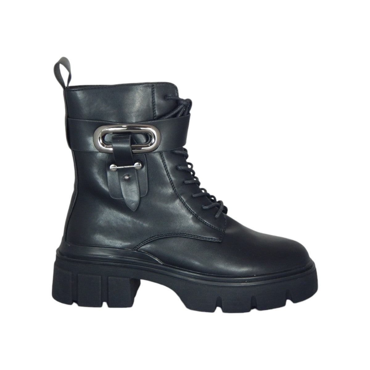 Ajustable con cierre al costado y agujetas, con suela de 5 cm. de altura.