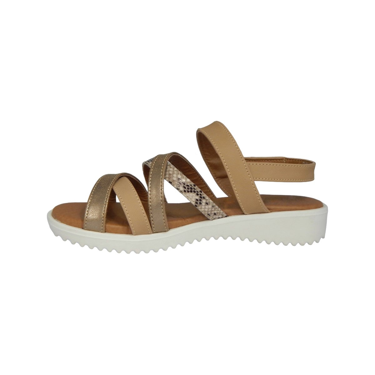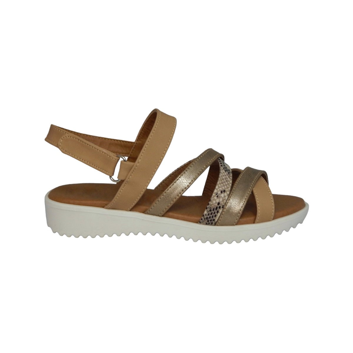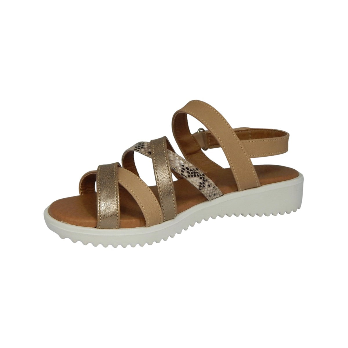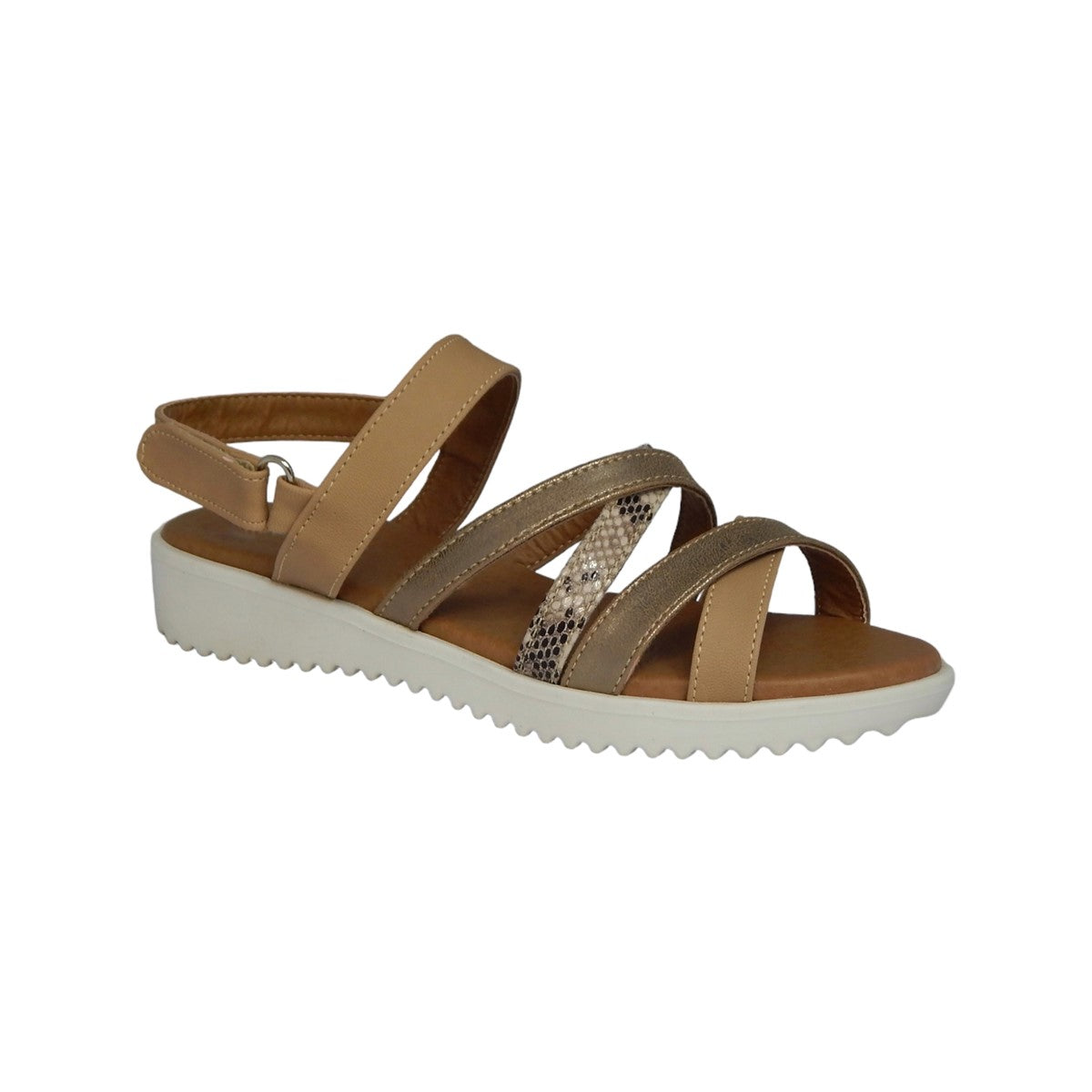 Tiras en diferentes acabados, suela antiderrapante, ajustable con hebilla al talón