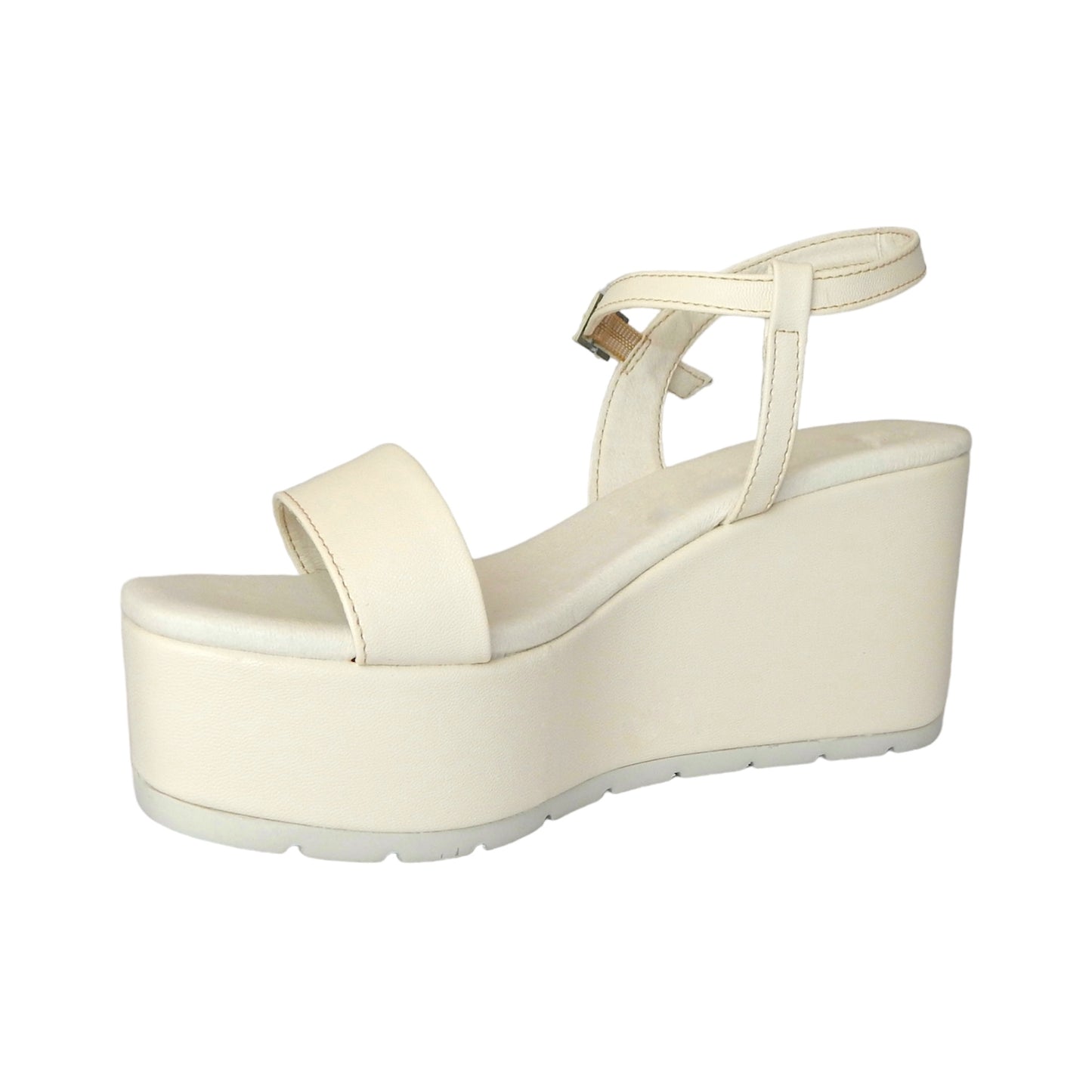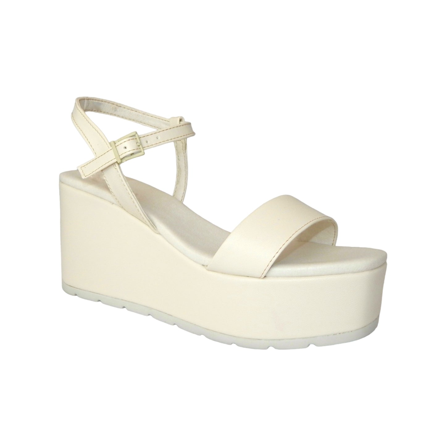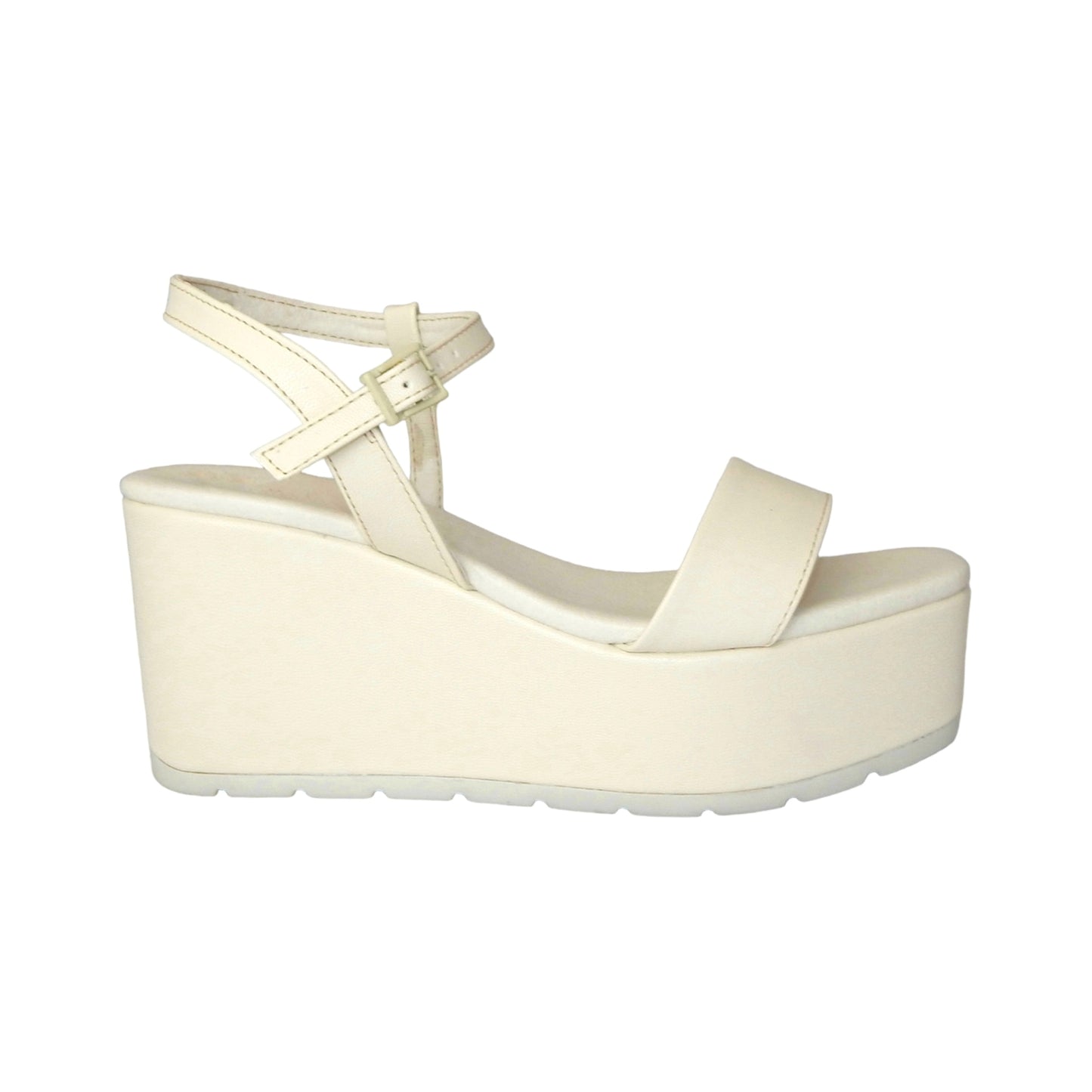 Sandalia con tira delgada en el empeine, ajustable con hebilla y plataforma de 8 cm de altura