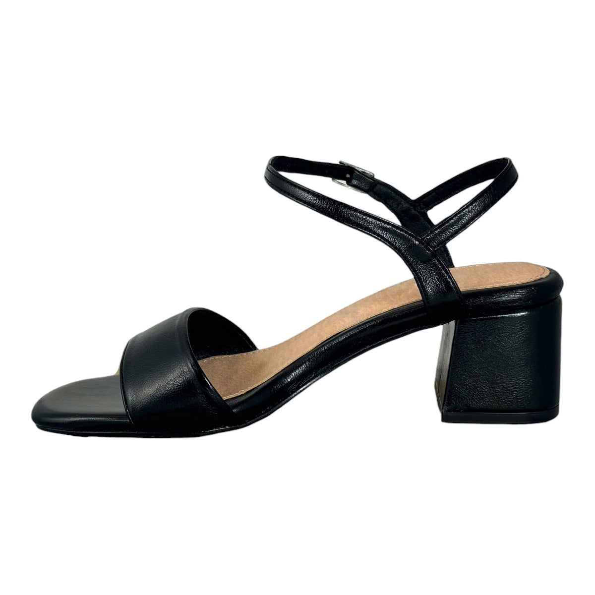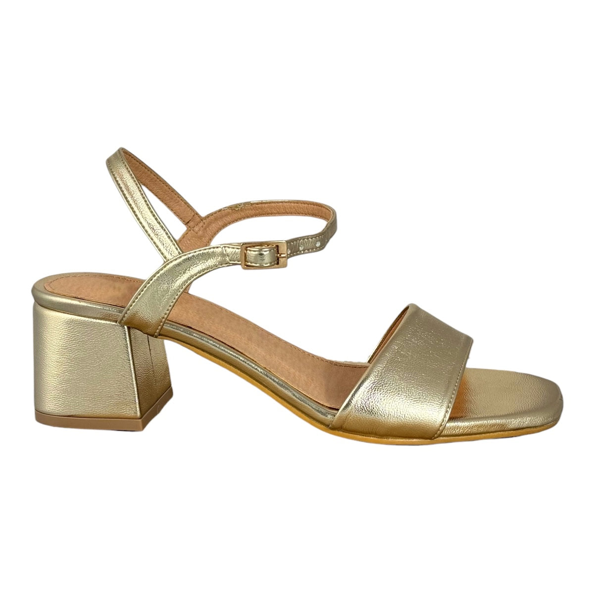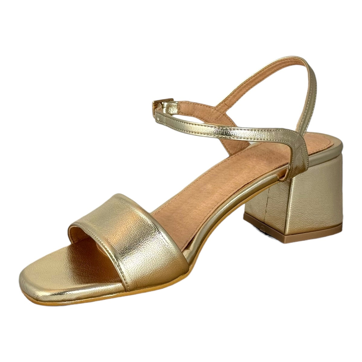 Ajustable con hebilla, con tacón de 5.5 cm. de altura.