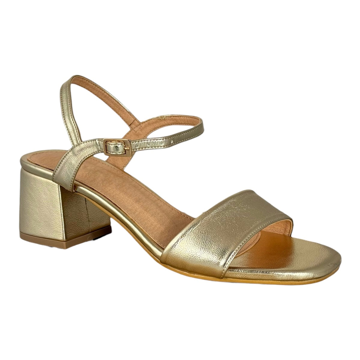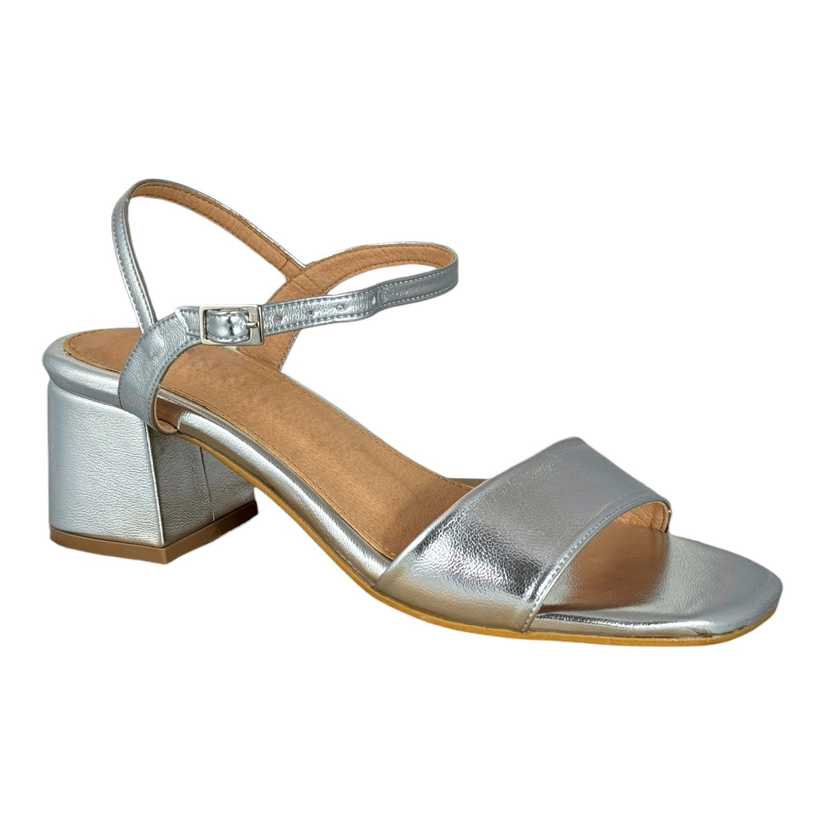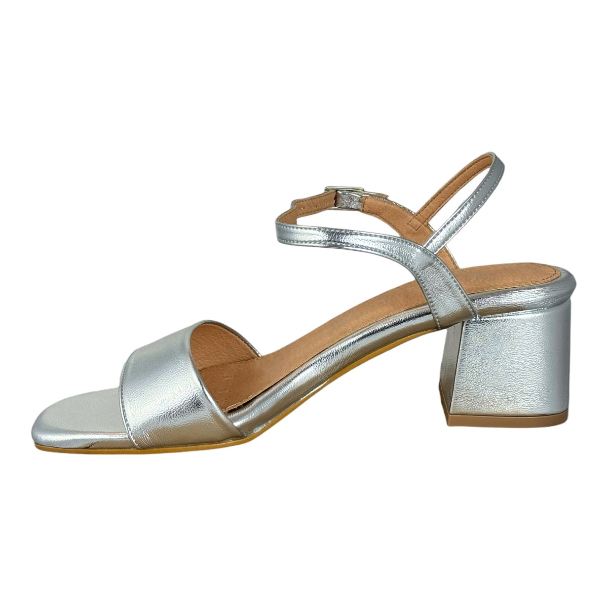Ajustable con hebilla, con tacón de 5.5 cm. de altura.
