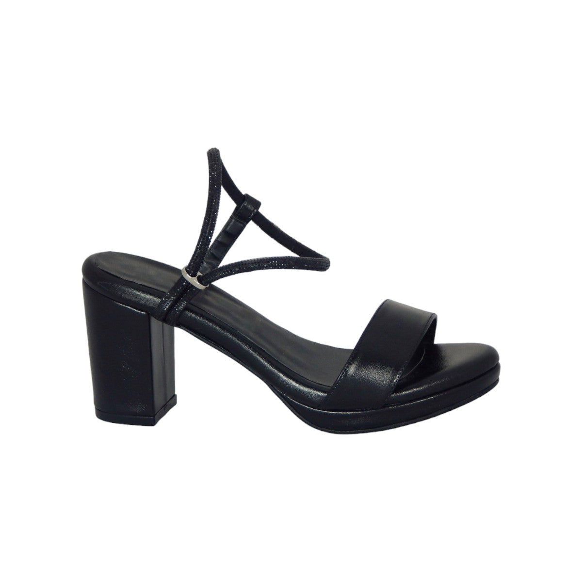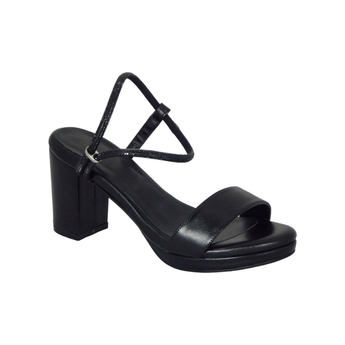 Ajustable con correa, con tacón de 8 cm. de altura.