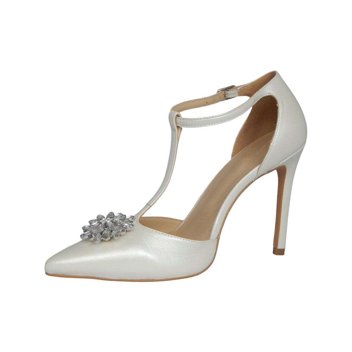 Zapatilla de tacón para novia con adorno decorativo en piedras